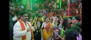 बसंतराय दुर्गा मंदिर में पहुंचे श्रम मंत्री संजय यादव, डांडिया में लिया भाग