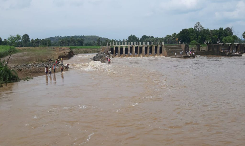 भारी बारिश से ढह गयी झमारिया चेकडैम का तटबंध, खेतों में पहुंचा पानी