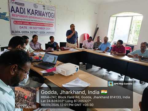 गोड्डा प्रखंड सभागार में सोमवार को बीडीओ दयानंद जायसवाल की अध्यक्षता में आदि कर्मयोगी अभियान के तहत एक उन्मुखीकरण कार्यक्रम का आयोजन किया गया. कार्यक्रम में विभिन्न विभागों के पदाधिकारियों, कर्मियों एवं जनप्रतिनिधियों ने हिस्सा लिया. इस अभियान के तहत गोड्डा प्रखंड के 15 अनुसूचित जनजाति बहुल गांवों रमाला संथाली, डोका बांध, दलदली, बेल्डीहा, सोनझर, कुंडादह, आमजोरा, कर्णपुरा, शहरी, झिलुवा, डंगा, जमकुंदर, सियारकटिया, दुल्लू एवं भवानी को चयनित किया गया है. इन गांवों का सर्वांगीण विकास सुनिश्चित करने हेतु अभियान को चरणबद्ध तरीके से आगे बढ़ाया जाएगा. बैठक में पंचायत सचिव, रोजगार सेवक, प्रखंड स्तरीय अधिकारीगण, प्रमुख, उपप्रमुख, एवं अन्य जनप्रतिनिधि उपस्थित रहे। सभी ने मिलकर आदि कर्मयोगी अभियान के उद्देश्यों को पूर्ण करने और गांवों के चहुंमुखी विकास के लिए समर्पित भाव से कार्य करने का संकल्प लिया. अभियान का मुख्य उद्देश्य जनजातीय बहुल गांवों का सांस्कृतिक, सामाजिक और आर्थिक रूप से सशक्तिकरण, मूलभूत सुविधाओं की पहुंच सुनिश्चित करना, ग्रामीणों को शासन की योजनाओं से सीधे जोड़ना आदि है. इस अवसर पर बीडीओ ने कहा कि प्रत्येक अधिकारी और कर्मी की भूमिका महत्वपूर्ण है. अभियान को जमीनी स्तर पर उतारना हमारी सामूहिक जिम्मेदारी है.