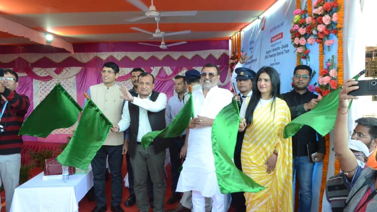 कार्यक्रम के दौरान मंच से संबोधित करते हुए डॉ दुबे ने कहा कि जाे सौगंध राम की खायी थी, आज मंदिर भी वहीं बन गया है. गोड्डा के लोग भाग्यशाली हैं कि आज यहां से साढ़े छह सौ यात्रियों को लेकर अयोध्या के लिए ट्रेन रवाना हुई है. सभी यात्रियों के खाने-पीने व ठहराव की व्यवस्था भाजपा कर रही है. श्री दुबे ने कहा कि श्रीराम चंद्र जी को मंजूर था, इस वजह से पांच मार्च के बदले छह मार्च को उनके ही हाथों हरी झंडी दिखाकर ट्रेन को रवाना किया गया, क्योंकि पांच मार्च को दूसरे कार्यक्रम में व्यस्तता थी. बताते चलें कि विशेष ट्रेन आस्था की रवानगी पांच मार्च को किया जाना था, मगर रेलवे विभाग की ओर से किसी कारण वश तिथि में बदलाव कर दिया गया.
