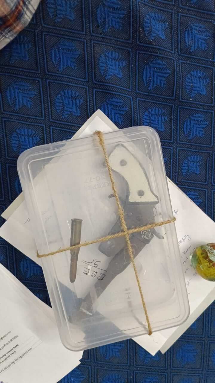 गोड्डा. गोड्डा नगर थाना क्षेत्र के चपरासी टोला मुहल्ले से पुलिस ने युवक के घर से देसी कट्टा तथा जिंदा कारतूस बरामद किया है. थाना प्रभारी दिनेश महली ने बताया कि मुहल्ले के नीशु खान के घर में छापेमारी की गयी. पुलिस शुक्रवार की देर रात वारंटियों को पकड़ने गयी थी. घर में जांच के क्रम में सीढ़ी के नीचे बने बॉक्स के पास से देसी कट्टा व कारतूस बरामद किया है. सूचना मिली थी कि नीशु खान चपरासी टोला में ब्राउन शुगर का कारोबार करता है. शुक्रवार की रात छापेमारी के दौरान सफलता हाथ लगी है. पुलिस को देखते ही नीशु खान घर की दीवार फांद कर भाग गया. नगर थाने में कांड संख्या 253/24 दर्ज किया गया है. छापेमारी में एसआइ संजय कुमार सिंह, अशोक कुमार दूबे, एएसआइ गौरव कुमार यादव, चालक चंदन कुमार सिंह समेत टाइगर मोबाइल के जवान थे.