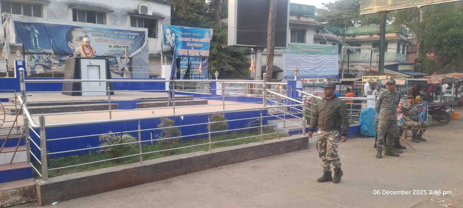 चौकसी. महापरिनिर्वाण दिवस के एक दिन पूर्व ही लागू की गयी थी धारा 144 गुरुवार को कुछ लोगों ने रातोंरात लगा दी थी आंबेडकर की प्रतिमा 17 नामजद व्यक्तियों की पहचान कर दर्ज करायी गयी है प्राथमिकी तस्वीर:- 45 प्रतिमा की निगरानी करते पुलिस जवान. प्रतिनिधि, गोड्डा गोड्डा मुख्यालय के पुराने समाहरणालय परिसर के मुख्य गेट के पास जिला प्रशासन द्वारा रोक के बावजूद बाबा साहब डॉ भीमराव आंबेडकर की प्रतिमा स्थापित करने को लेकर जिला प्रशासन के निर्देश पर गोड्डा एसडीओ ने बीएनएस की धारा 163 (पुराना धारा 144) को लागू कर दी है. बाबा साहब के महापरिनिर्वाण दिवस के एक दिन पूर्व हुई इस घटना ने जिला व पुलिस प्रशासन को सतर्क कर दिया था. शनिवार को महापरिनिर्वाण दिवस पर एसडीओ बैद्यनाथ उरांव व नगर प्रशासक अरविंद कुमार अग्रवाल के नेतृत्व में पुलिस का सख्त पहरा लगा रहा. ताकि कोई भी प्रतिमा के आसपास नहीं फटक सके. जानकारी के अनुसार, गुरुवार की मध्य रात्रि के समय कुछ लोगों ने रातों-रात सरकारी स्थल पर डॉ आंबेडकर की प्रतिमा लगा दी, जबकि कार्य के लिए सक्षम पदाधिकारी से मंजूरी नहीं ली गयी थी. प्रशासन ने इसे कानून-व्यवस्था के लिए गंभीर खतरा मानते हुए त्वरित एक्शन लिया है. रातों-रात प्रतिमा लगने की सूचना मिलते ही अधिकारियों ने मौके पर पहुंचकर स्थिति का जायजा लिया. आसपास के क्षेत्र में सुरक्षा व्यवस्था कड़ी करते हुए धारा 163 लगा दी. बतातें चले कि गोड्डा एसडीओ बैधनाथ उरांव के निर्देश पर गोड्डा सीओ परमजीत सेठी ने बिना अनुमति प्रतिमा लगाने में शामिल 17 नामजद व्यक्तियों की पहचान कर उनके खिलाफ नगर थाना में केस दर्ज कराया है. एसडीओ का कहना है कि सरकारी भूमि पर किसी भी प्रकार की निर्माण गतिविधि या प्रतिमा स्थापना के लिए अनुमति अनिवार्य है. नियम का उल्लंघन कर प्रतिमा लगानेवालों पर कानूनी कार्रवाई की जा रही है.
