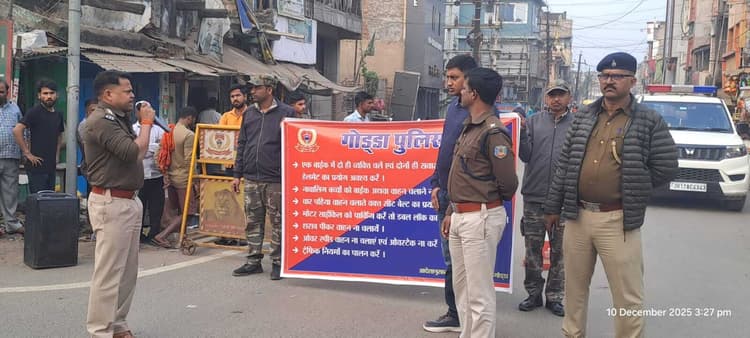 सड़क सुरक्षा अभियान के तहत कारगिल चौक पर वाहनों की जांच प्रतिनिधि, गोड्डा पुलिस अधीक्षक मुकेश कुमार के निर्देश पर सदर एसडीपीओ अशोक रविदास के नेतृत्व में कारगिल चौक पर सड़क सुरक्षा जागरूकता अभियान चलाया गया. इस दौरान लोगों से एक बाइक पर दो ही व्यक्ति चलने एवं दोनों को ही हेलमेट का प्रयोग करने, चारपहिया वाहन चालकों से सीट बेल्ट प्रयोग करने, ई-रिक्शा व ऑटो चालकों को जहां तहां वाहन खड़ा न करने, ओवरटेक न करने, तेजरफ्तार में वाहन न चलाने, घनी आबादी क्षेत्र में वाहन धीरे चलाने, शराब पीकर वाहन न चलाने, बाइक पार्किंग करें तो डबल लॉक का प्रयोग करें सहित अन्य निर्देश दिया. साथ ही एसडीपीओ ने कहा कि नाबालिग के वाहन चलाते हुए पकडे जाने पर परिजनों का ड्राइविंग लाइसेंस तीन साल के लिए निलम्बित व 25000 रूपया जुर्माना लगाया जायेगा. साथ ही यह भी कहा कि नाबालिग के बाइक व अन्य वाहन चलाते पकडे जाने पर परिजनों का ड्राइविंग लाइसेंस तीन साल के लिए निलम्बित व 25000 रुपया जुर्माना लगाया जायेगा. साथ ही उन्होंने कहा कि फोरलेन सडक पर बाइक स्टंट करते युवाओं के पकड़े जाने पर बाइक को जब्त कर भारी भरकम जुर्माना लगाया जायेगा. इस मौके पर एसडीपीओ के अलावा प्रशिक्षु डीएसपी गौरव कुमार, नगर थाना प्रभारी दिनेश महली आदि मौजूद थे. प्रतिनिधि, गोड्डा: