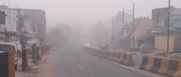 दिनभर नहीं दिखा सूर्य, विजिबिलिटी कम होने से जनजीवन प्रभावित