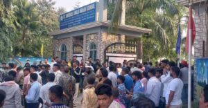हादसे में मौत को लेकर परिजनों ने मुआवजे की मांग को लेकर किया प्रदर्शन