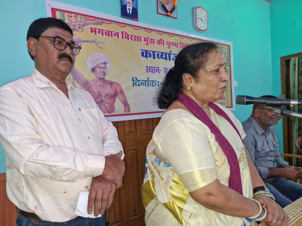 बिरसा मुंडा की पुण्यतिथि पर निर्झर काव्य संस्थान ने किया काव्यांजलि कार्यक्रम, कविताओं से गूंजा शांति नगर संवाददाता, गोड्डा. स्थानीय शांति नगर मोहल्ले के सूरज हॉस्टल में भगवान बिरसा मुंडा की पुण्यतिथि के अवसर पर काव्यांजलि का आयोजन किया गया, जिसमें श्रद्धा सुमन अर्पित किए गए. कार्यक्रम में मुख्य अतिथि के रूप में बांका के प्रसिद्ध साहित्यकार अचल भारती शामिल हुए. उद्घाटन राष्ट्रीय महिला आयोग की सदस्य ममता कुमारी ने दीप प्रज्वलित कर किया. ममता कुमारी ने निर्झर काव्य संस्थान द्वारा आयोजित इस आयोजन की सराहना की और कहा कि संस्था ऐसे साहित्यिक आयोजनों को नियमित रूप से करती रहे, उनके स्तर से पूर्ण सहयोग रहेगा. उन्होंने महिलाओं की बढ़ती जिम्मेदारियों की भी चर्चा की. वरिष्ठ अधिवक्ता दीनानाथ झा ने भी आयोजन को सार्थक बताया और सहयोग की बात कही. मंच संचालन संस्था के अध्यक्ष सह सत्संग प्रचारक ओम प्रकाश मंडल ने किया. कार्यक्रम के दौरान कवि डॉ. ब्रह्मदेव मंडल ने “कितना अच्छा अपना गांव “, मनोज राही ने “निर्झर को बहने दो “, और शैलेंद्र राम ने पहाड़ों पर आधारित रचना प्रस्तुत की. सुरजीत झा ने अंगिका रचना “एक लगोरे मुनिया… ” और हिन्दी व्यंग्य “बना दे मुझे निर्दलीय विधायक ” से खूब तालियां बटोरी. विनिता प्रियदर्शिनी की कविता “मेरी साइकिल चली ट्रिन ट्रिन ” श्रोताओं को खूब पसंद आई. शिव कुमार भगत की “मां पर कविता ” ने भावुक माहौल बना दिया. मुख्य अतिथि अचल भारती ने बिरसा मुंडा के प्रसंग को रखते हुए अपनी कविता “अभिव्यक्ति को अनुकूल सा पथ दे दो ” का पाठ किया, जिसे खूब सराहा गया. इस अवसर पर डॉ. ब्रह्मदेव मंडल द्वारा लिखित अंगिका काव्य संग्रह “ऋतु स्पर्श ” का विमोचन भी किया गया. मौके पर धनेश्वर पंडित, डॉ. स्मिता शिप्रा, विनीता प्रियदर्शिनी, ऋतुम्भरा मीठी, प्रकाश कुमार, चेतन राज, अरशद फिरोज, आशीष यादव, श्यामलाल साह, पूनम कुमारी सहित कई साहित्यप्रेमी उपस्थित थे.