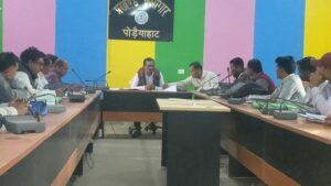 पोड़ैयाहाट प्रखंड सभागार कक्ष में बीडीओ फुलेश्वर मुर्मू की अध्यक्षता में समीक्षा बैठक आयोजित की गयी. बैठक में पंचायत सचिव, रोजगार सेवक, सहायक अभियंता तथा कनीय अभियंता उपस्थित थे. बीडीओ ने पूर्व बैठक में दिये गये निर्देशों की समीक्षा करते हुए उपस्थित सभी कर्मियों से बारी-बारी से संचालित योजनाओं की जानकारी ली. उन्होंने मनरेगा योजना से संबंधित कई आवश्यक निर्देश देते हुए कहा कि मनरेगा के तहत चल रहे कार्यों में तेजी लाने की आवश्यकता है. पशु शेड, आम बागवानी तथा दीदी बाड़ी योजना के कार्यों को निर्धारित प्रारूप के अनुसार जल्द पूरा किया जाये, ताकि लाभार्थियों को समय पर लाभ मिल सके. बीडीओ ने अबुआ आवास योजना को प्राथमिकता के आधार पर पूर्ण कराने का निर्देश दिया. उन्होंने बताया कि सरकार की गाइड लाइन व गोड्डा डीसी से प्राप्त दिशा-निर्देशों के अनुरूप सभी पंचायतों में सरकार की महत्वाकांक्षी योजनाओं को ग्रामीणों तक पहुंचाया जायेगा. इसके लिए आपकी योजना, आपकी सरकार, आपके द्वार कार्यक्रम को लेकर भी चर्च किया. उन्होंने सभी संबंधित अधिकारियों को तैयारी पूर्ण करने और यह सुनिश्चित करने का निर्देश दिया कि कार्यक्रम का आयोजन पंचायत भवन परिसर में किया जाये, ताकि पंचायत के अंतर्गत आनेवाले सभी ग्रामीणों को योजनाओं का पूर्ण लाभ मिल सके. मौके पर बीपीओ संजीव कुमार सहायक अभियंता इरफान अंसारी, जेई अभिषेक कुमार, सौरव यादव, रोजगार सेवक विवेक कुमार, रामकृष्ण झा, मोनिका सहित अन्य मौजूद थे.