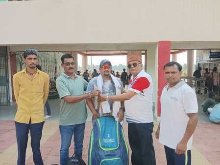 पश्चिम बंगाल के वर्दमान स्थित वारसूल में वेस्ट बंगाल दिव्यांग क्रिकेट एसोसिएशन के तत्वावधान में 12 एवं 13 मई को विद्यार्थियों द्वारा आयोजित दो दिवसीय झारखंड-बंगाल टी-20 दिव्यांग क्रिकेट सीरीज-फौजी कप के लिए 14 सदस्यीय झारखंड की टीम रविवार सुबह गंतव्य के लिए रवाना हुई. झारखंड फिजिकली चैलेंज्ड क्रिकेट एसोसिएशन के कार्यकारी अध्यक्ष सुरजीत झा एवं डिस्ट्रिक्ट स्लिंगशॉट एसोसिएशन के सचिव अखिल कुमार झा ने एसोसिएशन के महासचिव सह टीम के कप्तान मनीष कुमार सिंह का क्रमशः वस्त्र एवं पुष्प अभिनंदन कर उनके नेतृत्व में खिलाड़ियों को शुभकामनाएं देकर गोड्डा स्टेशन से रवाना किया. टीम में कप्तान मनीष सिंह, भोला पासवान, मुकेश कोतवाल, चंदन सिंह, राजेंद्र प्रसाद एवं सुलेमान मुर्मू (सभी छह गोड्डा से), प्रणेश विश्वास (रांची), बलराम एवं विकास (कोडरमा), विष्णु (धनबाद), मो. नाजीर, थॉमस एवं मो. आमिर (तीनों साहेबगंज), मो. सोएब (देवघर) हैं. दोनों राज्य टीम के बीच द्विपक्षीय श्रृंखला के तहत तीन मुकाबले होंगे. इस कप को जांबाज भारतीय सैनिकों के नाम समर्पित करते हुए उनके सम्मान में फौजी कप नाम दिया गया है.