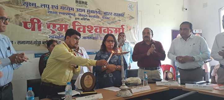 गोड्डा प्रखंड कार्यालय के सभागार में शुक्रवार को प्रधानमंत्री विश्वकर्मा योजना को लेकर एक दिवसीय जागरूकता कार्यक्रम का आयोजन किया गया. कार्यक्रम का आयोजन भारत सरकार के एमएसएमई मंत्रालय के अधीनस्थ एमएसएमई विकास कार्यालय, धनबाद के तत्वावधान में किया गया. कार्यक्रम का शुभारंभ डीसी अंजली यादव, एमएसएमई के सहायक निदेशक दीपक कुमार, डीआईसी के जीएम रामाकांत चतुर्वेदी, बीडीओ दयानंद प्रसाद जायसवाल, सीओ हलधर सेठी, एलडीएम, पोस्ट पेमेंट बैंक प्रबंधक शशिभूषण कुमार और आवेश कुमार ने संयुक्त रूप से दीप प्रज्वलन कर किया. डीसी अंजली यादव ने लाभुकों को संबोधित करते हुए कहा कि योजना के माध्यम से पारंपरिक कारीगरों और शिल्पकारों को आत्मनिर्भर बनाने की दिशा में यह एक महत्वपूर्ण पहल है. उन्होंने कहा कि लाभुक मीशो जैसी ऑनलाइन प्लेटफॉर्म से जुड़कर बिना जीएसटी के भी अपने उत्पादों की बिक्री कर सकते हैं. साथ ही, श्रम विभाग के तहत अपने व्यवसाय का पंजीकरण कराना भी जरूरी बताया. कार्यक्रम के अंत में डीसी श्रीमती अंजली यादव ने राम ठाकुर, करण मरीक और गनोरी शर्मा को योजना के तहत प्रमाणपत्र देकर सम्मानित किया. इस अवसर पर बड़ी संख्या में लाभुक, अधिकारीगण एवं स्थानीय प्रतिनिधि उपस्थित थे.