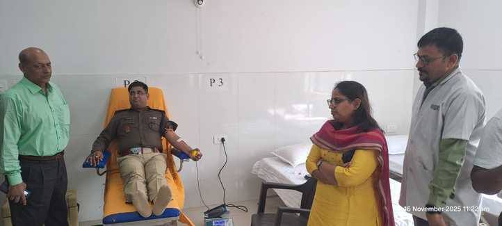 झारखंड राज्य के 25वें स्थापना दिवस के उपलक्ष्य में रविवार को गोड्डा के धर्मोडीह स्थित न्यू पुलिस लाइन परिसर में बने स्वास्थ्य केंद्र में स्वैच्छिक रक्तदान शिविर का आयोजन किया गया. यह शिविर राज्य के स्थापना दिवस को सेवा और समर्पण के भाव से मनाने तथा ब्लड बैंकों में रक्त की कमी को दूर करने के उद्देश्य से आयोजित किया गया था. शिविर का शुभारंभ डीसी अंजली यादव ने एसपी मुकेश कुमार की उपस्थिति में सुबह 11:15 बजे फीता काटकर किया. इस अवसर पर जिले के तीनों डीएसपी, सभी थाना प्रभारी, झारखंड पुलिस तथा आईआरबी के जवान बड़ी संख्या में उपस्थित रहे और रक्तदान किया. यह आयोजन झारखंड सरकार के उस राज्यव्यापी अभियान का हिस्सा है, जिसके तहत स्थापना दिवस के 25 वर्ष पूरे होने पर 12 से 28 नवंबर तक विभिन्न स्थानों पर स्वैच्छिक रक्तदान शिविर आयोजित किये जा रहे हैं. इस महत्वपूर्ण पहल में एसपी मुकेश कुमार, डीएफओ पवन पाल सहित 50 से अधिक पदाधिकारियों एवं कर्मियों ने सक्रिय रूप से रक्तदान कर मानव सेवा के प्रति अपनी प्रतिबद्धता व्यक्त की.