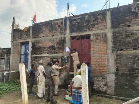 मेहरमा थाना क्षेत्र में पोक्सो एक्ट के तहत दर्ज कांड संख्या 85/25 के फरार आरोपित विक्रम कुमार रविदास की गिरफ्तारी को लेकर मेहरमा व बलबड्डा थाना पुलिस की संयुक्त कार्रवाई शुक्रवार को की गयी. मेहरमा थाना प्रभारी सौरभ कुमार ठाकुर के नेतृत्व में बलबड्डा थाना प्रभारी अमित मारकी एवं पुलिस बल की मौजूदगी में आरोपित के घर डुगडुगी बजाकर इश्तेहार चिपकाया गया. जानकारी के अनुसार, बलबड्डा थाना क्षेत्र के तेतरिया निवासी विक्रम कुमार रविदास पर मेहरमा थाना क्षेत्र की एक नाबालिग लड़की ने यौन उत्पीड़न के तहत मामला दर्ज कराया था. मामला दर्ज होने के बाद से ही आरोपित फरार चल रहा है. पुलिस अधीक्षक द्वारा मामले को गंभीरता से लिए जाने के बाद मेहरमा पुलिस को गिरफ्तारी के लिए आवश्यक कार्रवाई करने का निर्देश दिया गया था.