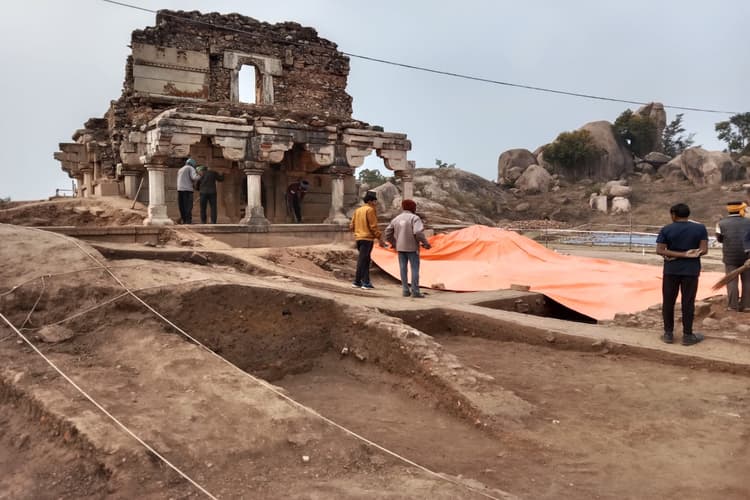 गुमला: 355 साल पुराने प्राचीन धरोहर नवरत्नगढ़ में कई इतिहास छिपे हुए हैं, जिसे पुरातत्व विभाग खंगालने का प्रयास कर रहा है. जगह-जगह खुदाई की जा रही है, जिससे नागवंशी राजाओं से जुड़े इतिहास जो जमीन के नीचे दफन हैं, वह धीरे-धीरे निकल रहा है और 355 साल पुराने इतिहास की जानकारी दे रहा है. अभी पुरातत्व विभाग खराब मौसम के बीच खुदाई कर रहा है. हालांकि, मौसम खुदाई में बाधा बना हुआ है. इसके बाद भी पुरातत्व विभाग खुदाई को जारी रखे हुए हैं. इससे जमीन के नीचे दबे इतिहास को उजागर किया जा सके.