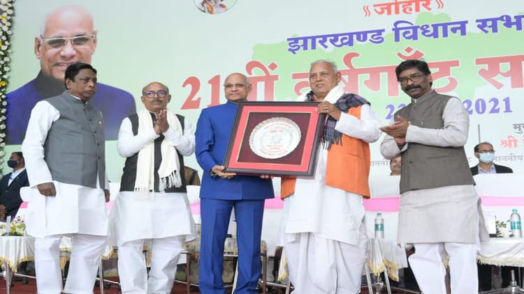 Jharkhand Vidhansabha Foundation Day 2021 (रांची) : 22 नवंबर को झारखंड विधानसभा 21 साल की हो गयी. 21वीं वर्षगांठ के मौके पर सोमवार को विधानसभा में कई कार्यक्रम आयोजित हुए. इस दौरान साल 2021 के लिए उत्कृष्ट विधायक के तौर पर पलामू के विश्रामपुर से भाजपा विधायक रामचंद्र चंद्रवंशी को राज्यपाल रमेश बैस ने सम्मानित किया. इस मौके पर सीएम हेमंत सोरेन, स्पीकर रवींद्र नाथ महतो समेत कई गणमान्य विधायक उपस्थित थे.