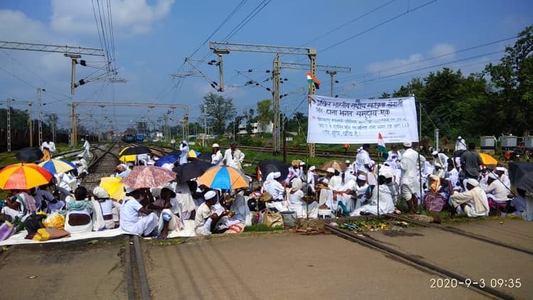 अखिल भारतीय राष्ट्रीय स्वतंत्रता सेनानी नीति टाना भगत समुदाय द्वारा विभिन्न मांगों को लेकर टोरी लेवल क्रॉसिंग पर रेल मालगाड़ी रोको कार्यक्रम आज दूसरे दिन भी जारी है. रेलवे ट्रैक पर सैकड़ों टाना भगत समुदाय के पुरुष-महिला ट्रैक पर बैठे हैं. रेलवे के यातायात निरीक्षक शिव शंकर सिंह की मानें तो बुधवार की शाम 17:15 में रेलवे ट्रैक पर लोग बैठे हैं. इसके बाद से वही स्थिति बरकरार है. एक रेलगाड़ी पार नहीं हुई है.