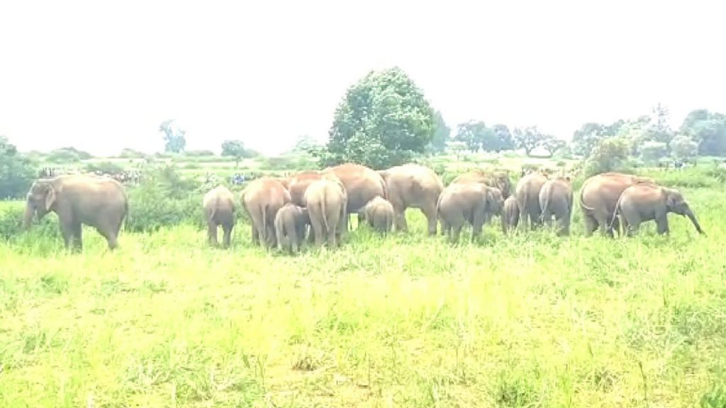 गांव में घुसे हाथियों को सरगांव जंगल खदेड़ा