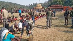 jharkhand news: गुमला पुलिस और सीआरपीएफ 218 बटालियन ने घोर नक्सल प्रभावित मरवा गांव में ग्रामीणों के साथ समय बिताया. उनकी समस्याएं सुनी. समाधान का आश्वासन दिया. उनके साथ भोजन किये और गरीबों के सुख-दुख में साथ देने का वादा किया.
