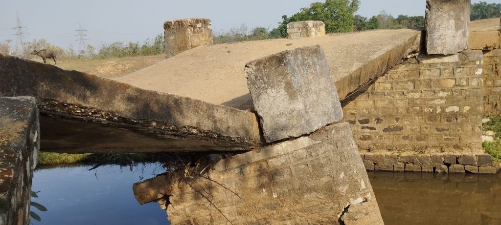 गुमला : मानसून की बारिश में ध्वस्त हो गया नाले पर बना पुल, अब स्टेशन जाना मुश्किल