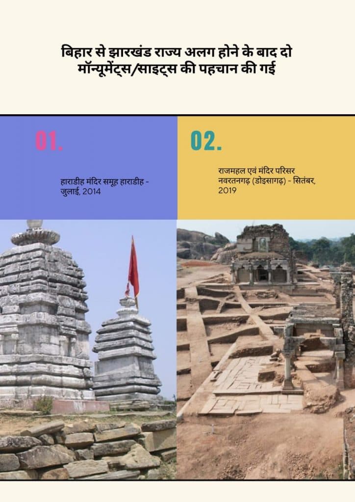 आपको बता दें कि वर्तमान समय में रांची मंडल के अंतर्गत कुल 13 राष्ट्रीय संरक्षित स्मारक/पुरास्थल है जिनकी देखभाल एवं रखरखाव प्राचीन मॉन्यूमेंट्स एवं आर्कियोलॉजिकल साइट्स व ध्वंसावशेष अधिनियम 1958 एंव नियम 1959 के प्रावधानों के अनुसार किया जा रहा है. झारखंड में अब तक 13 ऐसे मॉन्यूमेंट्स हैं, जिसे एएसआई द्वारा संरक्षित किया जा रहा है. इसमें से दो ऐसे मॉन्यूमेंट्स और साइट्स हैं, जिसे बिहार से अलग होने के बाद पहचान की गई है. टेंपल ऑफ हाराडीह की पहचान एएसआई द्वारा जुलाई 2014 में की गई वहीं प्लेस एंड टेंपल कॉम्प्लेक्स ऐट नवरत्नगढ़ की पहचान सितंबर 2019 में की गई.