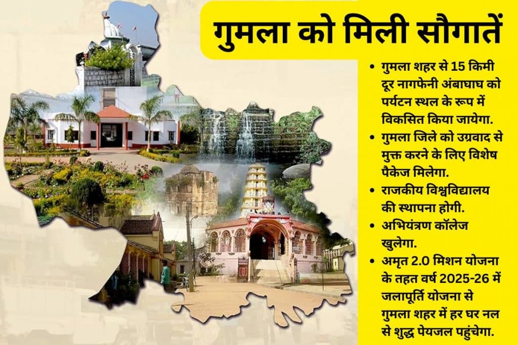 - गुमला जिले को उग्रवाद से मुक्त करने के लिए विशेष पैकेज मिलेगा.