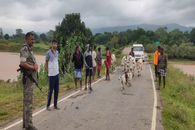 Heavy rain in Jharkhand: झारखंड के गुमला जिले के बिशुनपुर प्रखंड में 2 दिनों से मूसलाधार बारिश के दौरान शनिवार शाम करीब 5 बजे हेलता पंचायत स्थित मुंदार नदी पार कर रहे सगे भाई चरवा लोहरा (25 वर्षीय) व मुन्ना लोहरा ( 28 वर्षीय) नदी की तेज धार में बह गए थे. हालांकि बहने के दौरान किनारे पर पहुंचे चरवा लोहरा को गांव वालों ने रस्सी के सहारे बचा लिया था और मुन्ना लोहरा नदी की तेज धार में बहता चला गया, जिसका अब तक कुछ भी पता नहीं चल सका है. प्रखंड एवं पुलिस प्रशासन गांव वालों के सहयोग से संभावित जगहों पर मुन्ना को ढूंढने में जुटा है. अब तक उसका कोई सुराग नहीं मिला है. अंचलाधिकारी धनंजय पाठक ने कहा कि एनडीआरएफ की टीम को सूचना दी गई है. मुन्ना को ढूंढने में टीम की मदद ली जाएगी.