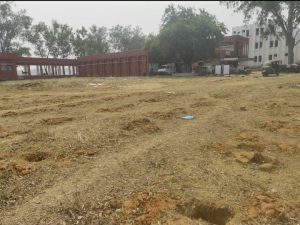 पौधरोपण करने के लिए महीनों पूर्व अस्पताल परिसर की बेकार भूमि में गड्ढा खोदा गया था. भवन निर्माण करा रहे संवेदक की संवेदनहीनता के कारण योजना क्रियान्वयन के अंतिम चरण तक एक भी पौधा नहीं लगाया जा सका है. जानकारी के अनुसार जुनैद कंस्ट्रक्शन प्राइवेट लिमिटेड के द्वारा लगभग 12 करोड़ की लागत से अस्पताल में भवन का निर्माण कराया जा रहा है. इसके लिए तीन वर्ष पूर्व 39 पेड़ों की कटाई की गयी थी. निर्धारित शर्तों के अनुसार इसके बदले संवेदक को 390 पेड़ लगाते हुए उसकी सुरक्षा सुनिश्चित की जानी थी. मामले की जानकारी वन विभाग को है, लेकिन वन विभाग ने खुद को अब तक पत्राचार तक ही बांधे रखा है.