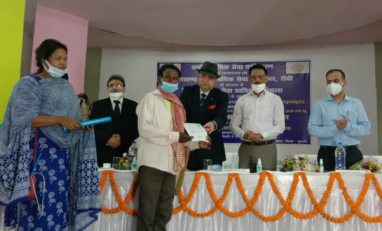 राष्ट्रीय विधिक सेवा प्राधिकरण (नई दिल्ली), झारखंड राज्य विधिक सेवा प्राधिका एवं गुमला जिला विधिक सेवा प्राधिकार के संयुक्त तत्वावधान में आजादी के अमृत महोत्सव के तहत शनिवार को गुमला नगर भवन में विधिक सेवा सह सशक्तीकरण शिविर का आयोजन किया गया. इसमें अनुसूचित जनजातियों, श्रमिकों, विधवाओं, महिलाओं, दिव्यांगजनों एवं समाज के अति पिछड़े वर्ग के लाभुकों के बीच कल्याणकारी योजनाओं के लाभांश का वितरण किया गया. मुख्य अतिथि झारखंड उच्च न्यायालय के न्यायाधीश डॉ एसएन पाठक, उपायुक्त शिशिर कुमार सिन्हा, पुलिस अधीक्षक डॉक्टर एहतेशाम वकारीब सहित अन्य अतिथियों ने कार्यक्रम का शुभारंभ किया.
