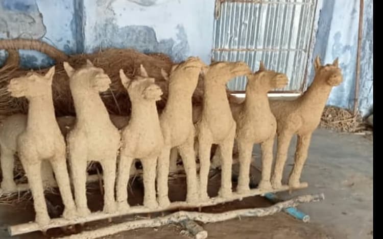 छह तालाब में स्थापित हो रही प्रतिमा