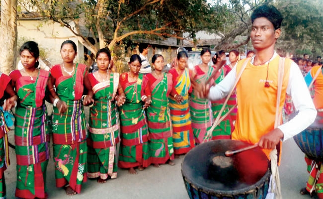 गांव की उपासीन लड़कियां सामूहिक रूप से तालाबों में जाकर स्नान करती हैं एवं शाम के समय युवक व युवितयां आदिवासी जनजाति वेशभूषा में सज धज कर करम राजा को लाने के लिए ढोल मांदर नगाड़ा, गीत संगीत रीझ रंग के साथ करम राजा को लाने जाते हैं. करम काटने से पूर्व गांव के पहान पुजार द्वारा अग्नि, जल, तपान अर्पित किया जाता है. उपवास रहने वाली युवितयों को करम पेड़ में तीन बार घुमाया जाता है. उनके भाइयों के द्वारा और युवक पेड़ में चढ़कर तीन करम की डाली को काटते हैं और फिर रीझ रंग साथ करम की डाली को अखाड़ा में लाया जाता है और वहां भी बैगा पहान पुजार द्वारा हड़िया, अग्नि अर्पन कर विधि विधान से करम की डाली को गाड़ा जाता है. इसके बाद पूजा की जाती है.