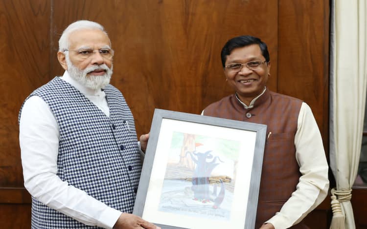 गुमला, दुर्जय पासवान : प्रधानमंत्री नरेंद्र मोदी से लोहरदगा संसदीय क्षेत्र के सांसद सुरदर्शन भगत ने बुधवार को संसद भवन कार्यालय में मुलाकात की. मुलाकात के दौरान सांसद ने प्रधानमंत्री को गुमला जिले के डुमरी में स्थापित प्राचीनतम शिव मंदिर बाबा टांगीनाथ का चित्र भेंट किया. जिस पर प्रधानमंत्री अत्यंत स्नेह मार्गदर्शन प्राप्त हुए और गुमला, लोहरदगा संसदीय क्षेत्र के हालचाल जाना. प्रधानमंत्री द्वारा सांसद सुदर्शन भगत से संसदीय क्षेत्र में केंद्र की योजनाओं सहित संपूर्ण विकास योजनाओं की जानकारी ली.
