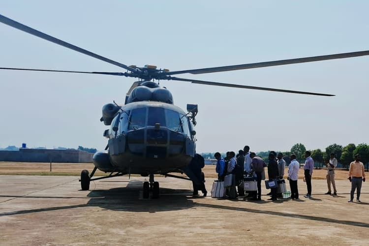उग्रवादियों के गढ़ में हेलीकॉप्टर से मतदान कराने पहुंचे मतदान कर्मी