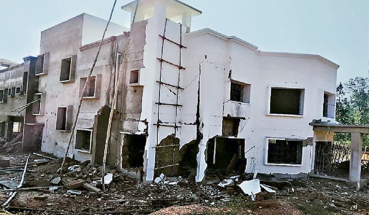 भवन में सो रहे सात मजदूरों को नक्सलियों ने पहले कब्जे में लिया, फिर भवन को उड़ा दिया
