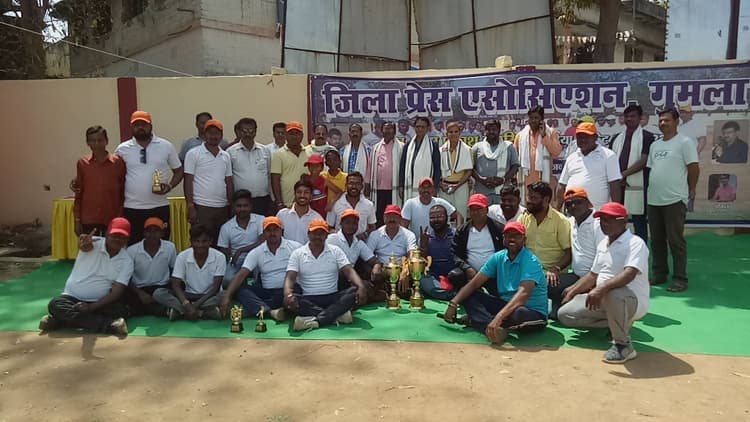 Jharkhand News: गुमला जिला प्रेस एसोसिएशन द्वारा परमवीर अलबर्ट एक्का स्टेडियम-टू में आयोजित पत्रकार स्व. ओमप्रकाश चौरसिया क्रिकेट टूर्नामेंट का फाइनल मुकाबला गुरुवार को हुआ. अंजनीपुत्र इलेवन ने टांगीनाथ इलेवन को दो विकेट से पराजित कर खिताब पर कब्जा जमाया. अतिथियों द्वारा विजेता, उपविजेता व अन्य खिलाड़ियों को ट्रॉफी देकर सम्मानित किया गया. गुमला के वरिष्ठ पत्रकार विजय आनंद व गणपत लाल चौरसिया को प्रेस एसोसिएशन द्वारा सम्मानित किया गया.