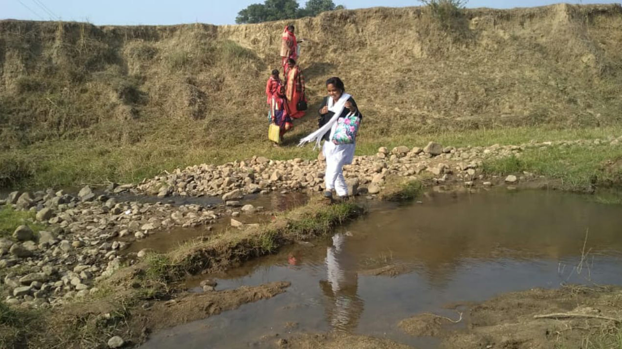 गुमला जिला के ग्रामीण क्षेत्र विशेषकर पहाड़ी और जंगली क्षेत्र में पथरीले, कंटीले और दुर्गम रास्ते की परवाह किये बिना कोविड टीकाकरण का काम तेजी से चल रहा है. कोविड टीकाकरण टीम में शामिल एएनएम, सहिया, स्वास्थ्य कार्यकर्ता, जेएसएलपीएस की महिलाएं व डीलर ऐसे रास्तों की परवाह किये बिना घर-घर जाकर कोविड टीकाकरण नहीं लेने वाले 18 से 45 वर्ष तक के लोगों का टीकाकरण कर रहे हैं.