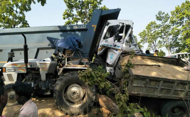 बड़कागांव : हाइवा ने बालू लदे ट्रैक्टर को टक्कर मारा, दो की मौत, 10 घायल
