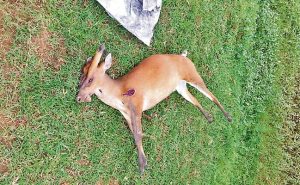 बताया जाता है कि बुधवार को किसी ने एक हिरण को गोली मार दी, जिससे उसकी मौत हो गयी. स्थानीय लोगों के अनुसार, घटना बुधवार को दिन के करीब दो बजे की है. कयास लगाया जा रहा है कि शिकार खेलने के उद्देश्य से कुछ लोग जंगल घुसे और हिरण पर फायरिंग की. घायल हिरण गांव की ओर जा रही थी, लेकिन रास्ते में उसकी मौत हो गयी.
