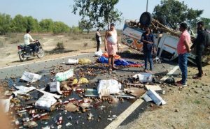 हजारीबाग : शराब लदी पिकअप वैन पलटी, ग्रामीणों ने मचायी लूट