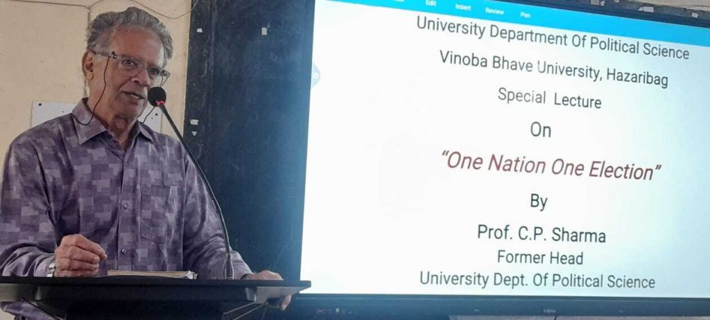 विभावि स्नातकोत्तर राजनीति विज्ञान विभाग में मंगलवार को वन नेशन वन इलेक्शन विषय पर व्याख्यान हुआ.
