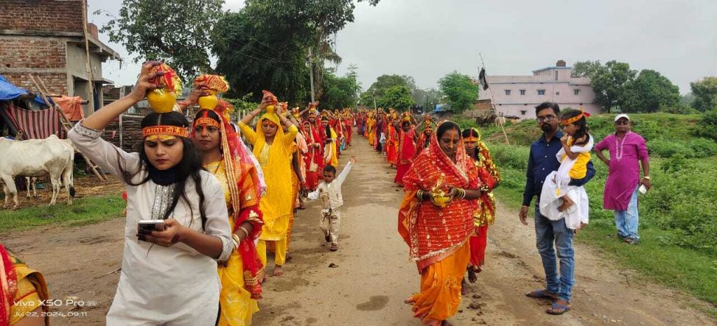 रामदेव खरिका पंचायत के कवालू गांव में एक दिवसीय रूद्राभिषेक यज्ञ सोमवार को किया गया. कवालू के पुराने शिव मंदिर का जीर्णोद्धार होने और सोमवारी के अवसर पर यह यज्ञ का आयोजन हुआ. इसकी शुरुआत कलश यात्रा के साथ की गयी. करीब 200 महिला श्रद्धालु मंदिर से कलश लेकर बाजे-गाजे के साथ कवालू कोनार नदी पहुंचे. आचार्य कामेश्वर पंडित, अखिलेश पंडित सहयोगियों के साथ जलाभिषेक कराया. ग्रामीणों के बीच भंडारा हुआ. यज्ञ के मुख्य पुजारी सुशील सिंह, पत्नी नीलम देवी पूजा में शामिल थे. यज्ञ सफल बनाने में योगेंद्र सिंह, अजय साव, वीरेंद्र यादव, प्रभात सिंह, संतानु सिंह, उदय सिंह, अर्जुन कुमार दास, सूर्यदेव प्रजापति, आनंद गुप्ता, कुलदीप गुप्ता, कौलेश्वर गुप्ता मौजूद थे....