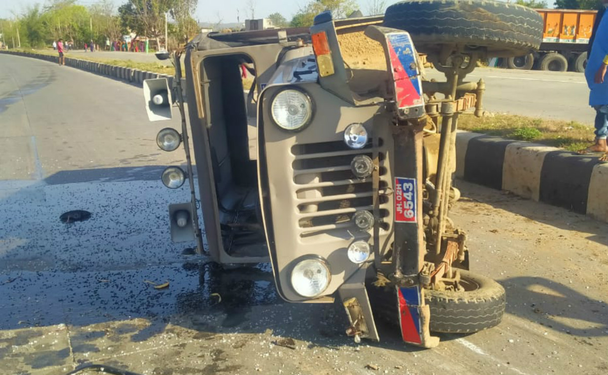 घटना रविवार को जीटी रोड पर ग्राम कोनहराखुर्द के समीप थाने की जीप गाड़ी नंबर जेएच 02 एच 6543 को बोलेरो गाड़ी नंबर डब्लूबी 37 बी 3219 के बीच हुई. बोलेरो पिकअप का ड्राइवर अपनी गाड़ी मौके पर ही छोड़कर फरार हो गया. इस टक्कर में पुलिस की गाड़ी पलट गयी.
