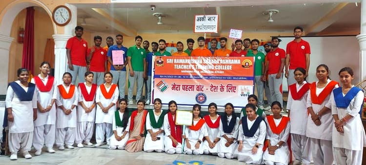 श्री रामकृष्ण शारदा आश्रम शिक्षक प्रशिक्षण महाविद्यालय में राष्ट्रीय सेवा योजना की ओर से मतदाता जागरूकता अभियान चलाया गया. मेरा वोट देश के लिए उद्देश्य के साथ मतदाता जागरूकता गीत बी एड के प्रशिक्षुओं द्वारा गाया गया. गीत के बोल थे हमें वोट डालने जाना है… महाविद्यालय के बहुत से प्रशिक्षु शिक्षक अपने जीवन में पहली बार अपने मताधिकार का प्रयोग करने जा रहे हैं. इसकी उत्सुकता उन्होंने जाहिर की. प्रशिक्षु शिक्षक पीयुषा कुमारी पाठक ने समाचार संवाददाता के प्रश्न का उत्तर देते हुए कहा कि मैं नयी पीढ़ी की हूं. इसलिए मैं वोट उन्हें ही दूंगी जो देश के हित के लिए कार्य करेंगे. इस कार्यक्रम में मंच संचालन, स्वागत भाषण व धन्यवाद ज्ञापन सहायक प्राध्यापक विवेकानन्द पांडेय ने किया. महाविद्यालय के राष्ट्रीय सेवा योजना के कार्यक्रम पदाधिकारी दयानन्द यादव की देखरेख में यह कार्यक्रम आयोजित किया गया. प्राचार्य डॉ समाप्ति पॉल ने सभी को वोट डालने के लिए प्रेरित किया. कहा कि देश के उज्ज्वल भविष्य के लिए हम सभी को अपने मताधिकार का प्रयोग करना चाहिए. कार्यक्रम में महाविद्यालय के प्राचार्य डॉ समाप्ति पॉल, आईक्यूएसी समन्वयक डॉ परीक्षित लायक सहित सहायक प्राध्यापकों में डॉ अपोलिना बाखला, तनिमा प्रिया, विवेकानन्द पाण्डेय, दयानन्द यादव, श्यामली सलकर, डॉ प्रमोद दांगी, डॉ प्रिया देव, गोपाल राम, डॉ सत्या सिंह, सिन्टू वर्मा, अरविन्द मालाकार, सतीश राणा, सत्यजीत बेरा, नवीन बारा, प्रितेश कुमार एवं सभी प्रशिक्षु शिक्षक उपस्थित थे. कार्यक्रम का समापन राष्ट्रगान के साथ हुआ.डिस्क्लेमर: यह प्रभात खबर समाचार पत्र की ऑटोमेटेड न्यूज फीड है. इसे प्रभात खबर डॉट कॉम की टीम ने संपादित नहीं किया है