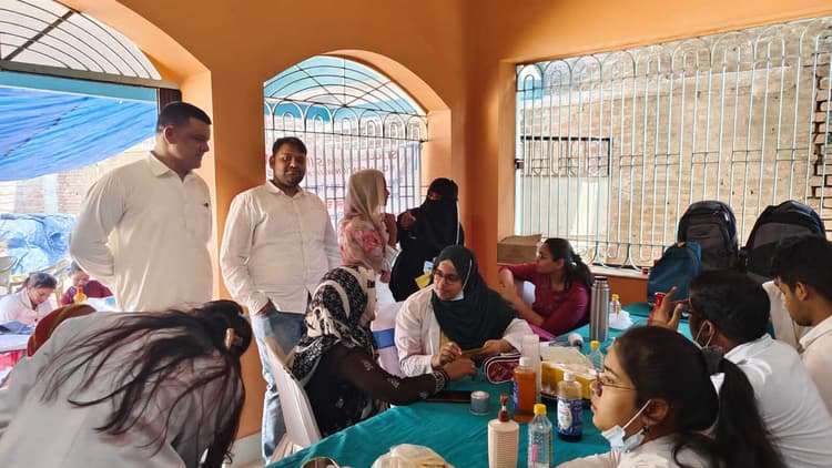 संत कोलंबा मिशन होस्पिटल ने ने स्व अनवर कुरैशी के आवासीय परिसर में हजारीबाग काॅलेज ऑफ डेंटल साइंस एंड होस्पिटल के सहयोग से फ्री मेडिकल चेकअप कैंप लगाया. बाबर कुरैशी और आरिफ कुरैशी ने अहम भूमिका निभायी. मेडिकल चेकअप कैंप में तकरीबन 300 लोगों ने हेल्थ चेकअप कराया. इसमें ब्लड शुगर, ब्लड प्रेशर, आंखों की जांच सहित कई बीमारियों का चेकअप किया. समाजसेवी बाबर कुरैशी व आरिफ कुरैशी ने कहा कि इस प्रकार के मेडिकल चेकअप कैंप और रक्तदान शिविर बराबर आयोजित किया जाता है. मौके पर आरिफ कुरैशी, मो मुदस्सर, ऐनुल हक, मो सलीम ने मेडिकल चेकअप कैंप के आयोजन को लेकर विशेष रूप से सहयोग किया. मेडिकल टीम में डॉ सौम्या राज, डॉ कौसर, डॉ आकिब, डॉ नसरीन, डॉ जोश, डॉ किशन, डॉ विदिशा, डॉ काजल, डॉ आकाश, राज कुंवर दास, नेहा द्वेदी, लक्ष्मी कुमारी, सौरभ, गुंजन प्रिया, रेणु कुमारी, रिशभ कुमार सिंह, ऋषिकेश सिंह शामिल थे.डिस्क्लेमर: यह प्रभात खबर समाचार पत्र की ऑटोमेटेड न्यूज फीड है. इसे प्रभात खबर डॉट कॉम की टीम ने संपादित नहीं किया है