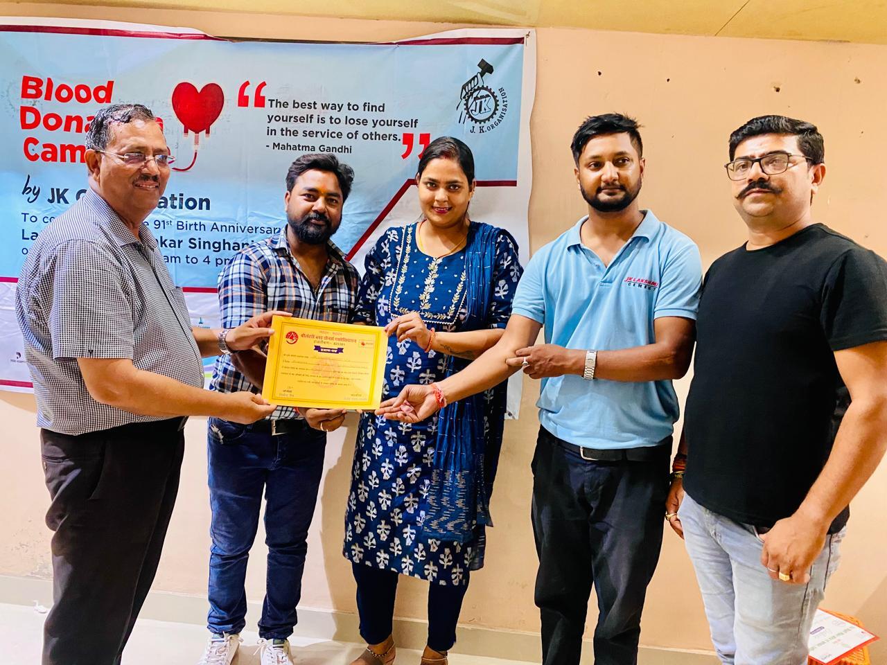जेके लक्ष्मी सीमेंट ऑर्गेनाइजेशन द्वारा स्व हरिशंकर सिंघानिया के 91वें जन्म दिवस पर रक्तदान शिविर लगाया गया. लोहासिंहना रोड स्थित अक्षत स्टील व गुप्ता सीमेंट एजेंसी प्रतिष्ठान में वॉलंटरी ब्लड डोनर्स एसोसिएशन व शेख भिखारी मेडिकल कॉलेज के सहयोग से रक्तदान शिविर लगाया. उदघाटन वॉलंटरी ब्लड डोनर्स के अध्यक्ष निर्मल जैन, सीनियर सेल्स ऑफिसर निशांत कुमार, संचालक अमित कुमार और विशाल गुप्ता ने किया. शिविर का शुभारंभ अमित कुमार ने रक्तदान करके किया. आदर्श सिन्हा, सुशांत प्रकाश, गौरव कुमार, अनीश कुमार, प्रदीप प्रसाद, दीपक कुमार, रवि शंकर कुमार, सुमित कुमार, बृज बिहारी, विकास कुमार सिंह, विकास कुमार रक्तदान कर मानवता का परिचय दिया. निर्मल जैन ने सभी रक्तदाताओं सर्टिफिकेट देकर सम्मानित किया. शिविर को सफल बनाने में पूजा गुप्ता, संतोष कुमार, टेक्नीशियन मुरली प्रजापति, पूनम कुजूर, अजीत कुमार, गोपाल कुमार, सोनू कुमार, मनीष कुमार, सिया सिन्हा, सीमा कुमारी का विशेष योगदान रहा.डिस्क्लेमर: यह प्रभात खबर समाचार पत्र की ऑटोमेटेड न्यूज फीड है. इसे प्रभात खबर डॉट कॉम की टीम ने संपादित नहीं किया है
