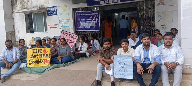 Hazaribagh News: शेख भिखारी मेडिकल कॉलेज अस्पताल में जूनियर और सीनियर रेजिडेंस डॉक्टरों की हड़ताल दूसरे दिन भी जारी रहा. बुधवार को चिकित्सकों के समर्थन में मेडिकल कॉलेज के छात्र भी धरना में बैठे. सुबह 10 बजे से चिकित्सकों का धरना शुरू हुआ. इससे मेडिकल कॉलेज अस्पताल की ओपीडी सेवा पर असर पड़ा. हड़ताली चिकित्सकों ने इस दौरान किसी भी मरीज का इलाज नहीं किया. इसके कारण मरीजों को काफी परेशानी का सामना करना पड़ा. मात्र अस्पताल की इमरजेंसी सेवा ही चालू रही.