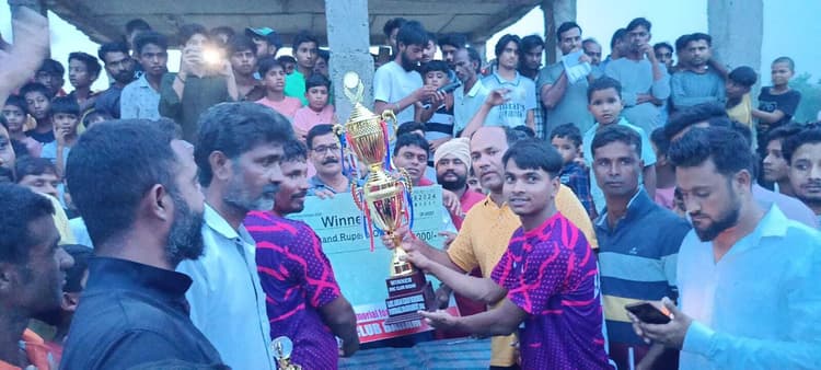 बादम में स्व अहसन खान मेमोरियल फुटबॉल टूर्नामेंट का फाइनल मैच बुधवार को लॉकडाउन फुटबॉल क्लब बनाम सिद्धू कान्हु फुटबॉल क्लब हजारीबाग के बीच बीएमसी मैदान में खेला गया. फाइनल मैच का शुभारंभ मुखिया बासुदेव यादव, दीपक दास, राजा खान, जुबेर खान, नासिब खान, बेलाल सगीर ने फुटबाॅल को किक मार कर किया. लॉकडाउन टीम ने सिद्धू कान्हु टीम को 3-0 से हराकर टूर्नामेंट का ख़िताब जीता. मैच में रेफ्ररी की भूमिका शहंशाह खान, सहायक रेफ्ररी नौशाद अहमद और आमिर अकबर ने निभाया. विजेता टीम को तीस हजार रुपए और ट्रॉफी देकर गोंदलपुरा मुखिया बासुदेव यादव और बादम मुखिया प्रतिनिधि दीपक दास ने सम्मानित किया. वहीं उपविजेता टीम को बीस हजार और ट्रॉफी देकर सम्मानित किया गया. टूर्नामेंट का सर्वश्रेष्ठ खिलाड़ी का पुरुस्कार सिद्धू कान्हु के संजू को और मैच का सर्वश्रेष्ठ खिलाड़ी का पुरुस्कार लॉकडाउन के सूरज को दिया गया. सिद्धू कान्हु के गोलकीपर को टूर्नामेंट का सर्वश्रेष्ठ गोलकीपर का पुरुस्कार मिला. टूर्नामेंट का सफल बनाने में शाहबाज आलम, नसरू, ताबिश, अकमल, राजू, शिहान, अकिब, रफसन, आदिल, फैसल, सबा, जमाल सगीर, आरिज अकबर, प्रकाश राम, असगर इमाम, नूर हसन, मिस्बाहुल इस्लाम, हाजी सामो, श्रीकांत निराला, नासिर अहसन, सानू सहित का अहम योगदान रहा.डिस्क्लेमर: यह प्रभात खबर समाचार पत्र की ऑटोमेटेड न्यूज फीड है. इसे प्रभात खबर डॉट कॉम की टीम ने संपादित नहीं किया है