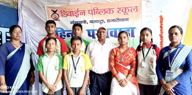 गंगपाचो गांव स्थित डिवाइन पब्लिक स्कूल में हिंदी दिवस मनाया गया. बच्चों में कविता पाठ, भाषण, सुलेख लेखन, कविता लेखन, हिन्दी व्याकरण, नृत्य नाटिका प्रतियोगिता का आयोजन किया गया. शुभारंभ निदेशक आइपी भारती ने किया. उन्होंने कहा कि हिन्दी भारत को जोड़ने वाली भाषा और हमारे स्वाभिमान, परम्परा, सभ्यता की प्रतीक है. प्राचार्या स्वाती रंजन ने कहा कि भाषा देश की गरिमा होती है. हिन्दी शिक्षक मुरलीधर महतो ने हिन्दी के क्रमवार विकास के इतिहास पर अपने विचार प्रस्तुत किया. प्रतियोगिता में अंकिता कुमारी, आर्या ज्योति कुमारी, संदीप कुमार, आदर्श कुमार, शिवम कुमार, संगम कुमार, विद्या भारती, शाहिन प्रवीन, चांदनी कुमारी, मुस्कान खातून, अस्मिता कुमारी, अमित कुमार, किरण कुमारी, राखी कुमारी, पूनम कुमारी, प्रशांत कुमार, मृत्युंजय शर्मा, कनक लता, अंजली यादव को विजय घोषित किया गया. सफल बनाने में अनील उपाध्याय, कुलदीप पासवान, रूबी खातुन, सुलेखा मोदी, संजय यादव, अविशेष कौशल, अजय मंडल, पूनम कुमारी, मानती लकड़ा, राधा कुमारी समेत अन्य लोग शामिल हैं.डिस्क्लेमर: यह प्रभात खबर समाचार पत्र की ऑटोमेटेड न्यूज फीड है. इसे प्रभात खबर डॉट कॉम की टीम ने संपादित नहीं किया है