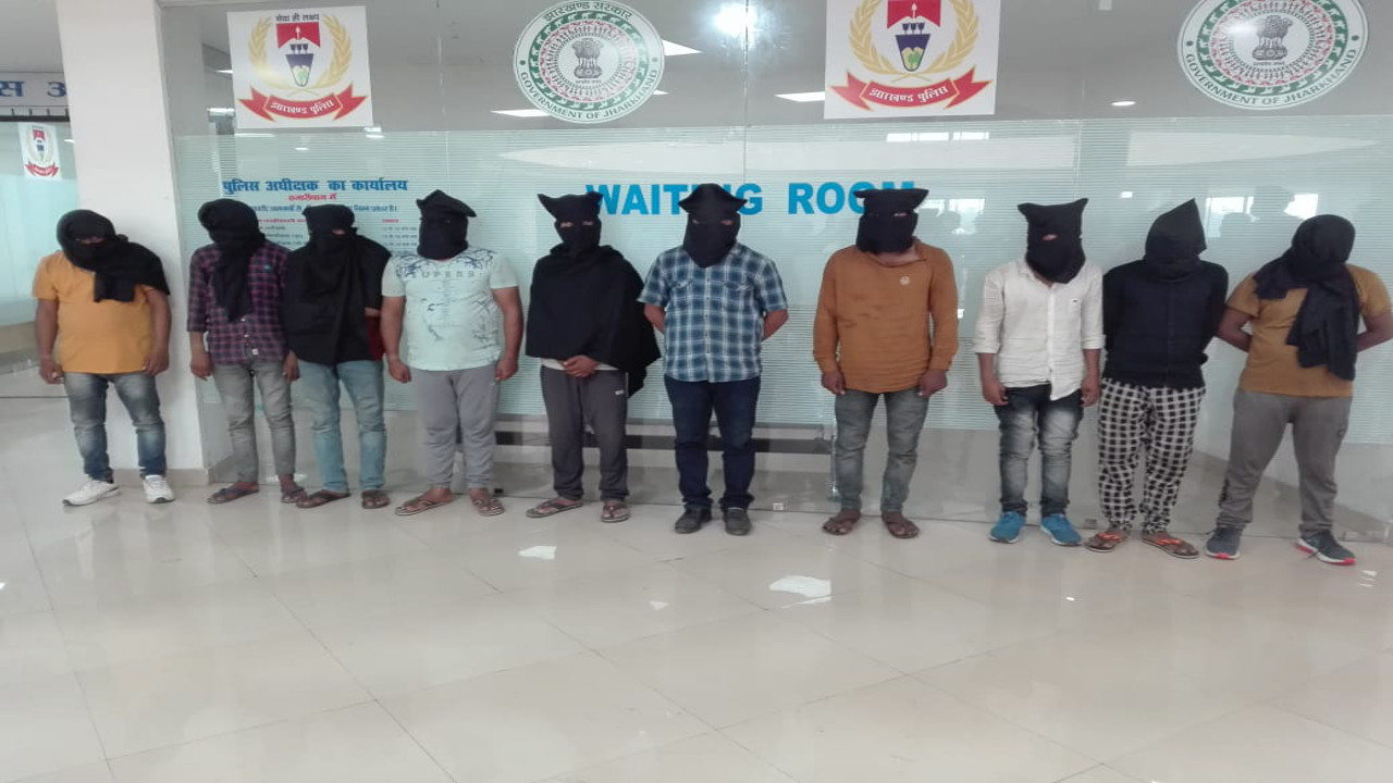 गिरफ्तार आरोपियों में बिहार मुजफ्फरपुर सदर थाना क्षेत्र के सुस्ता गांव के रवींद्र कुमार, मनिहारी थाना क्षेत्र मोहहमदपुर मुबारक के मो मुकीम पिता, बक्सर वीर कुंवर सिंह कॉलोनी के शैलेश मिश्रा, राजपुर थाना क्षेत्र के खानपुर गांव के चंद्रजीत कुमार, नालंदा गिरियक थाना क्षेत्र रेटर गांव के राजेश कुमार, कैमूर भभुआ जिला मोहनियां थाना क्षेत्र के मुबारकपुर के धर्मेंद्र चौधरी, धनबाद जिला मधुवन थाना क्षेत्र के खरखरी गांव के बिटू सोनार, हजारीबाग बरकट्ठा थाना क्षेत्र के कोसना गांव के दीपक कुमार, कोर्रा थाना क्षेत्र के मटवारी मुहल्ला के विशेष कुमार सोनी और रामगढ़ जिला घाटो के रितिक अनुराग हैं.