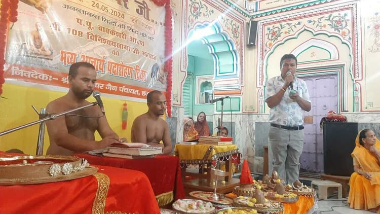 दिगंबर जैन पंचायत द्वारा आचार्य विनिश्चय सागर जी महाराज का आठवां पदारोहण दिवस मनाया गया. इसमें हजारीबाग के दो शिष्यों मुनि 108 प्रज्ञान सागर जी महाराज व मुनि 108 सागर जी महाराज की उपस्थिति में बड़ा बाजार दिगंबर जैन मंदिर में पूजन कार्यक्रम हुआ. इसमें सुशील कुमार पाटनी के परिवार द्वारा पाद प्रक्षालन व शास्त्र भेंट दी गयी. महिला जैन समाज, जैन महिला मिलन, जैन युवा परिषद, विहार यात्रा समूह, आचार्य विद्यासागर पाठशाला समूह और आहार समिति द्वारा आचार्य को अर्घ प्रस्तुत किया गया. संचालन दिगंबर जैन पंचायत के उपाध्यक्ष जेपी जैन विनायका ने किया. पूजन कार्यक्रम में दीपक पंडित, विपिन कुमार छाबड़ा, ललित अजमेरा ने महत्वपूर्ण भूमिका निभायी. कार्यक्रम में अमर जैन विनायका, राजेश सेठी, अमर विनायका, प्रवीण सेठी, अविनाश विनायका समेत कई लोग शामिल थे.डिस्क्लेमर: यह प्रभात खबर समाचार पत्र की ऑटोमेटेड न्यूज फीड है. इसे प्रभात खबर डॉट कॉम की टीम ने संपादित नहीं किया है