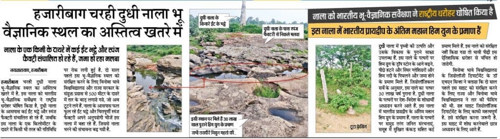 खतरे में हजारीबाग का दुधी नाला, नाले में हैं भारतीय प्रायद्वीप के अंतिम महान हिम युग के प्रमाण