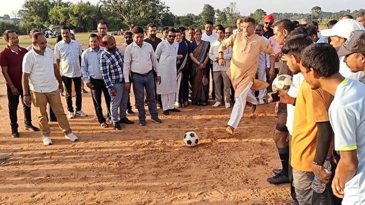 प्रतिनिधि, दारूरामदेव खरिका मैदान में बुधवार को सांसद खेल महोत्सव के तहत नमो फुटबॉल टूनामेंट का आयोजन किया गया. उदघाटन सांसद मनीष जायसवाल ने कीक मारकर किया. सांसद ने कहा कि इस टूर्नामेंट का आयोजन ग्रामीण क्षेत्र के खिलाड़ियों को जिला, राज्य और राष्ट्रीय स्तर तक पहुंचाने के उद्देश्य किया जा रहा है. खिलाड़ी अपनी प्रतिभा का प्रदर्शन कर अपने क्षेत्र का नाम रौशन करें. सांसद ने सभी युवाओं से नशा छोड़ खेल से जुड़ने का आग्रह किया. उदघाटन मैच टाटीझरिया के टूडू एलेवन मुर्की टीम बनाम कंदागढ़ा टीम के बीच खेला गया. पेनाल्टी शूट में टूडू एलेवन मुर्की टीम 1-0 से विजेता बनी. इस अवसर पर समाजसेवी श्रद्धानंद सिंह, जिला अध्यक्ष विवेकानंद सिंह, शेफाली गुप्ता, राजकरण पांडेय, इंद्रनारायण कुशवाहा, अशोक कुशवाहा शामिल थे. इस टूर्नामेंट में दारू, चुरचू, इचाक और टाटीझरिया प्रखंड की कुल 56 टीमों ने भाग लिया है. विजेता टीम को सांसद मनीष जायसवाल की ओर से 25 हजार रुपया, नमो ट्रॉफी व उपवेजता टीम को 15 हज़ार रुपये के साथ नमो ट्रॉफी दी जायेगा.