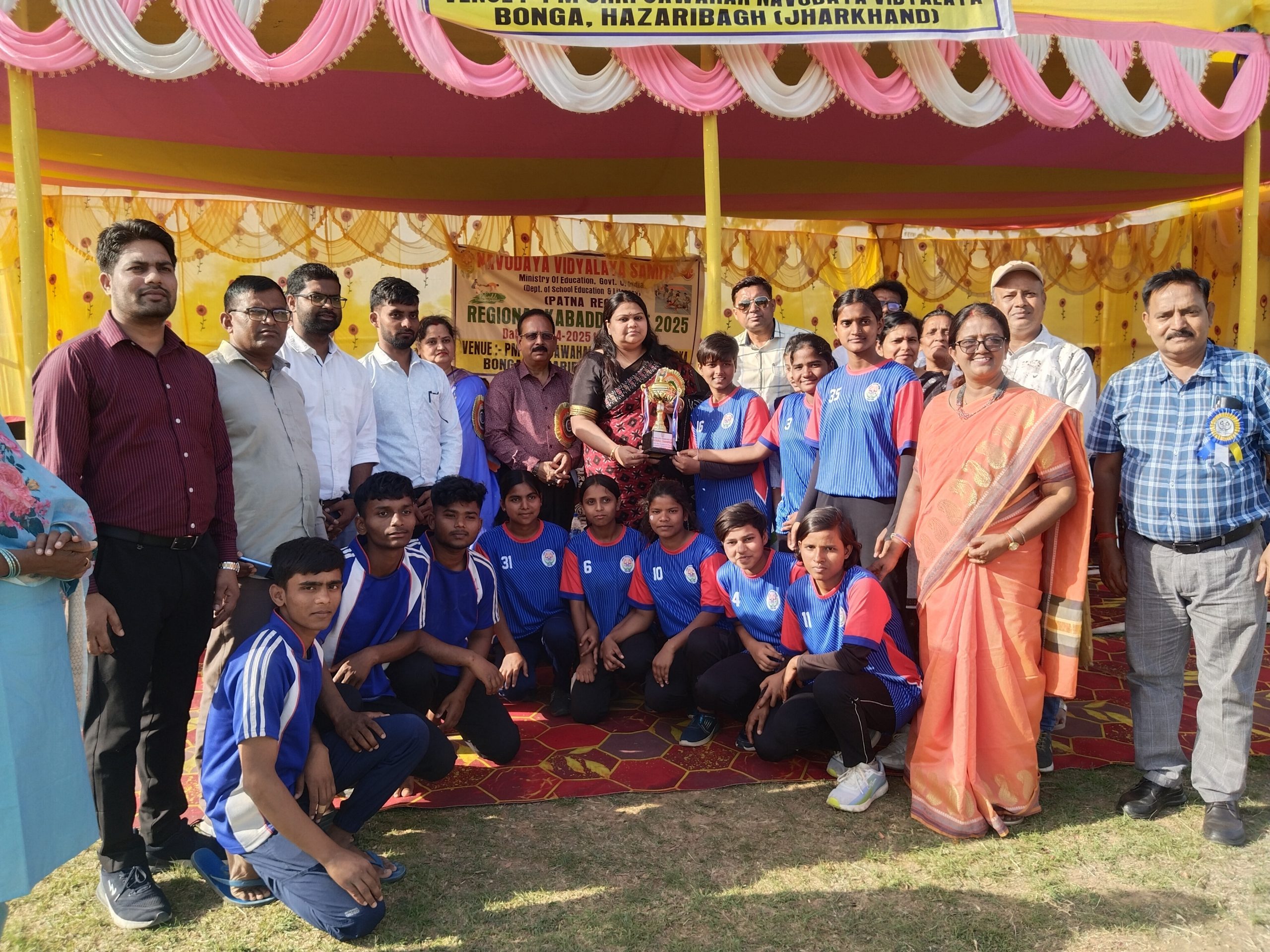 जीवन जीने की कला सिखाता है खेल: उपायुक्त इचाक. नवोदय विद्यालय समिति पटना संभाग के तत्वावधान में पीएम श्री जवाहर नवोदय विद्यालय बोंगा, हजारीबाग में आयोजित तीन दिवसीय संभागीय कबड्डी प्रतियोगिता बुधवार को संपन्न हो गयी. समापन समारोह में मुख्य अतिथि के रूप में उपायुक्त नैन्सी सहाय शामिल हुईं. प्रतियोगिता में पटना संकुल के खिलाड़ियों ने बेहतर खेल का प्रदर्शन कर ओवर ऑल चैंपियन बनने का गौरव हासिल किया. बालिका वर्ग अंडर-14 में कटिहार, अंडर-17 में पटना, अंडर-19 में पटना संकुल की टीम विजेता रही. वहीं बालक वर्ग अंडर-14 में पटना, अंडर-17 में भी पटना एवं अंडर-19 में कटिहार संकुल के खिलाड़ियों ने कब्जा जमाया. जबकि बालिका वर्ग में पटना, रांची एवं वर्द्धमान संकुल उपविजेता बनी. बालक वर्ग में कटिहार एवं पटना की टीम दूसरे स्थान पर रही. मुख्य अतिथि उपायुक्त नैंसी सहाय ने विजेता संकुल के खिलाड़ियों को शील्ड एवं कप देकर सम्मानित किया. उपविजेता संकुल की टीमों को विशिष्ट अतिथि बीडी त्रिवेदी एवं प्राचार्य विनोद कुमार पांडेय ने सम्मानित किया. डीसी नैंसी सहाय ने कहा कि खेल जीवन जीने की कला सिखाता है. खेल हमें अनुशासन सिखाता है, धैर्य सिखाता है, आपसी प्रेम सिखाता है. उन्होंने खिलाड़ियों का उत्साह बढ़ाते हुए आगे भी बेहतर करने के लिए प्रोत्साहित किया. विशिष्ट अतिथि डॉ बीडी त्रिवेदी ने भी खिलाड़ियों का उत्साह बढ़ाया. प्राचार्य विनोद कुमार पांडेय ने डीसी नैंसी सहाय और अन्य अतिथियों का स्वागत किया. इसके पूर्व अभिनीत कुमार के निर्देशन में साक्षी कुमारी एवं श्रुति कुमारी समेत अन्य छात्राओं ने स्वागत गान प्रस्तुत किया. मुस्कान समेत ग्रुप की छात्राओं ने मनमोहक नृत्य प्रस्तुत किया. विक्की कुमार दशम ने छऊ नृत्य पेश कर सबका मन मोह लिया. शिक्षक मो तनवीर अकबर खान ने खेल परिणामों को डीसी के समक्ष रखा. मंच संचालन छात्रा साक्षी कुमारी एवं सोनिया कुमारी ने किया. धन्यवाद ज्ञापन शिक्षिका जया जायसवाल ने किया. इस अवसर पर अरविंद कुमार सिंहा, गीतांजलि पांडेय, अवधेश कुमार यादव, सुचिता कुजूर, एसके प्रसाद, बीपी तिवारी, गणेश शंकर, प्रशांत बाला, वीसी मौर्य, एके साहू, आशा पासवान, अफरोज आलम, दीपक यादव, कमलेश कुमार, राज कुमार महतो, मनोज कुमार, अंजू दत्ता झा, प्रियंका शर्मा, मधु सिंह, सुलेखा कुमारी, सुनील चौबे, निरंजन प्रजापति समेत अन्य लोग उपस्थित थे.